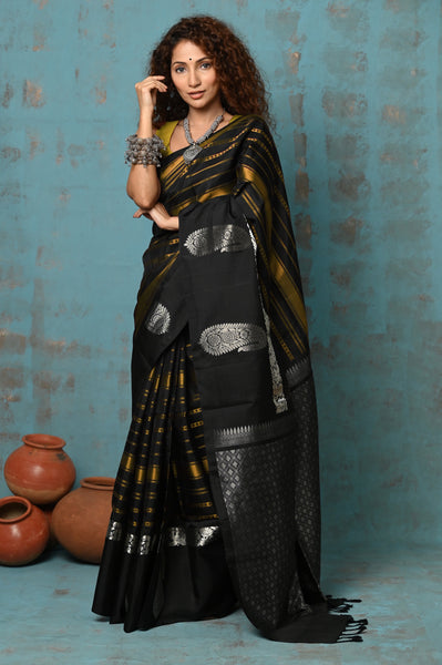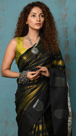 Limited Edition Designer Weaves (Anokhi, in its own way)These sarees are specially designed with Pure Silk Thread, featuring unique borders and trendy color combinations. Handwoven by our skilled senior weavers, they are lightweight, easy to drape, and stylish, blending tradition with modern design. This Handloom Pure Soft Silk Saree is a beautiful fusion of grace and style, designed for the woman who appreciates tradition with a contemporary twist. The soft silk feels light and luxurious against the skin. Adorned with intricate patterns and rich detailing that embody sophistication and grace. the Designer pallu adds a stunning contrast to the saree's body, creating a look that’s regal and unique Whether for festive events or formal gatherings, this saree brings an air of sophistication and luxury to your wardrobe..