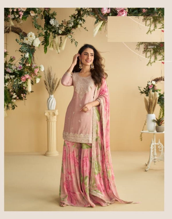 Aarshi Fashions Pink Silk Suits About the Product: Length of Kurta: 36 Kurta Style: Suits Kurta Fabric: Silk Kurta Colour: Pink Bottom Color: ...