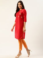 All About You Women Red & Orange Embroidered Yoke Design Kurta set with Dupatta - XS