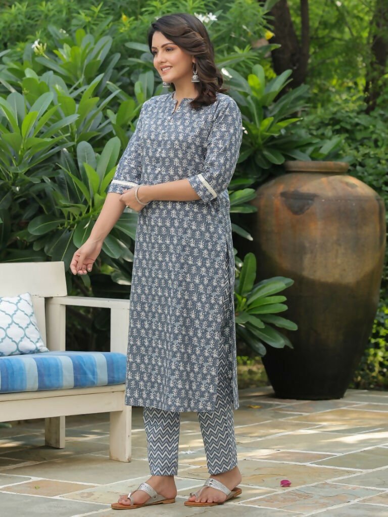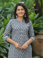 Aramya Straight Soft Cotton Block Print Women's Kurta - BlueElevate your style with our uniquely designed kurta, perfect for daily wear or casual o...