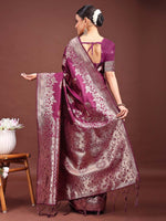Astita Emerald Purple Banarasi Silk Saree with Zari Floral Work - Elegance Woven in Every Thread