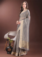 Astita Grey Organza Saree with Gold Checked Design - Elegant & Classy Traditional Wear for Formal & Festive Occasions