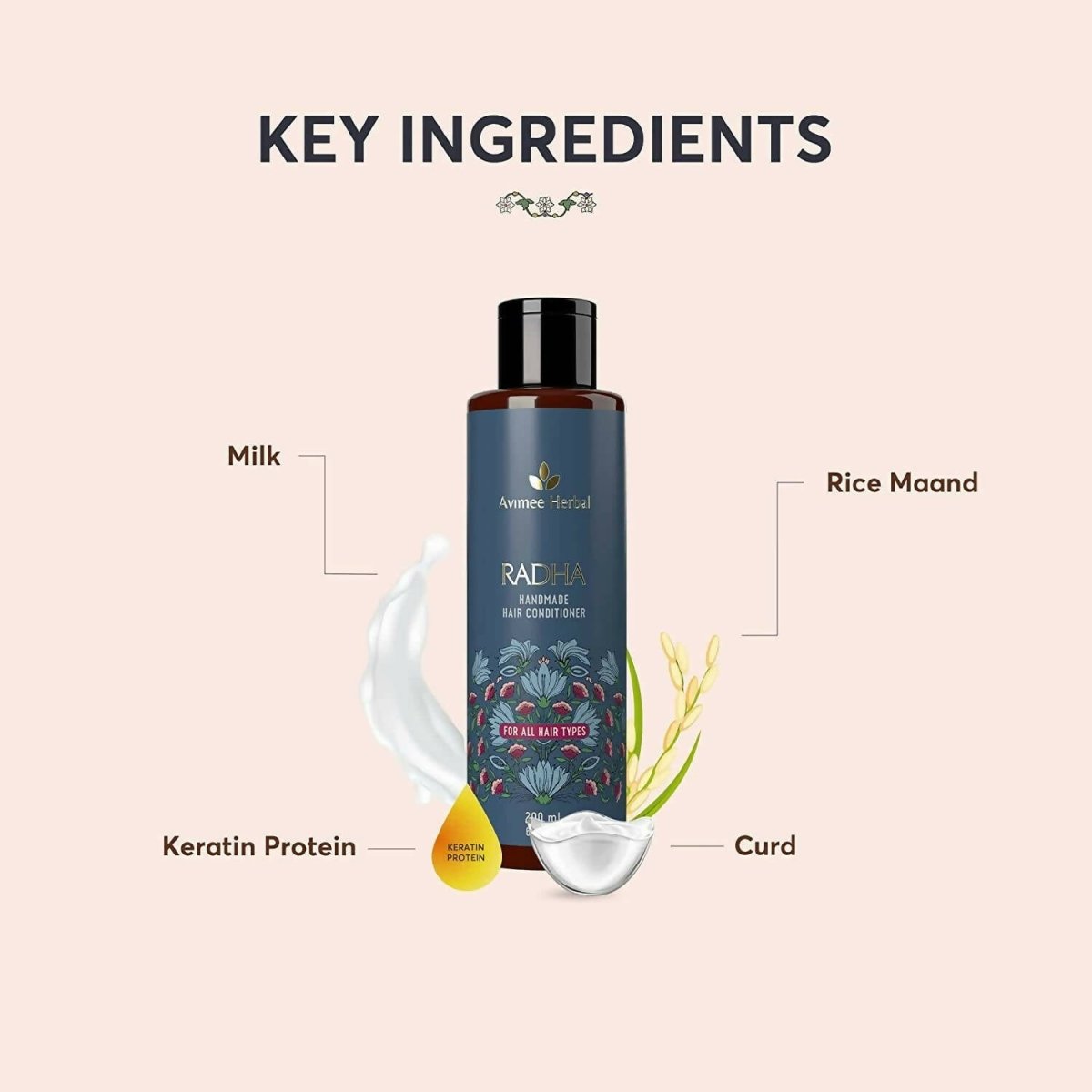 Avimee Herbal Radha Hair Conditioner For All Hair Type With Keratin Protein, Rice Protein, Apple Cider Vinegar & Aloe Vera, Makes Hair Silky Smooth - Distacart