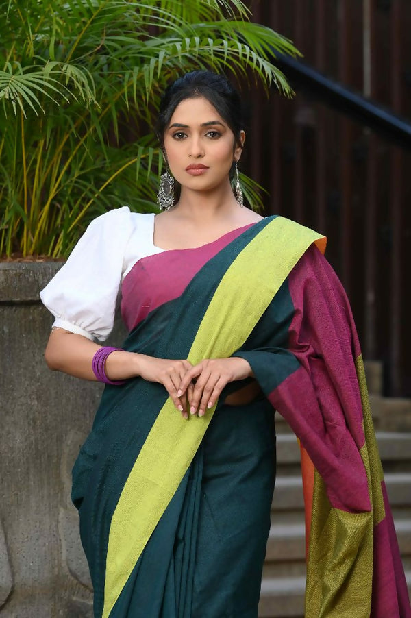 Beatitude Green Cotton Handloom Saree