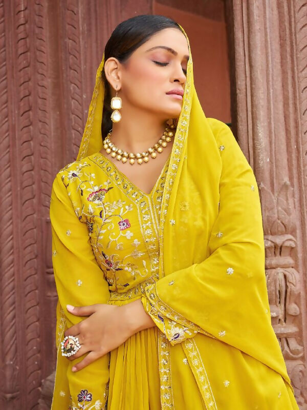 Joban Fashion Yellow Readymade Kurta Set With Sequence embroidery Work Top Lenght: 55-57 Top Fabric: Gorgette Top Color: Yellow Top Work / ...