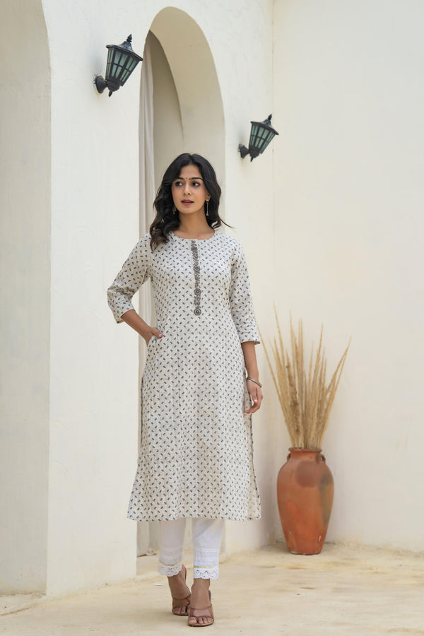 Juniper White Minimal Motif Printed Kurta