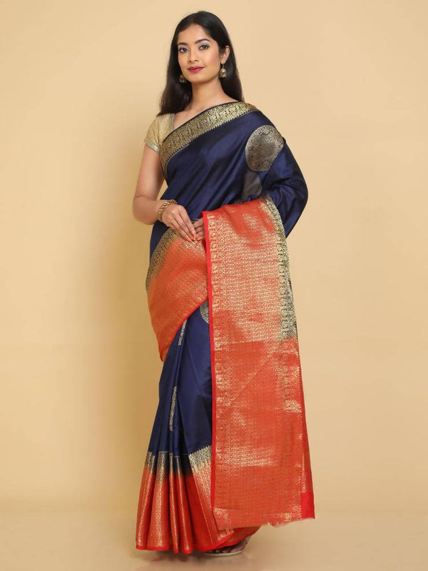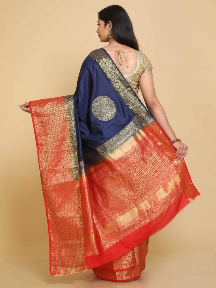 Kalamandir Woven Design Navy Blue Silk Blend Saree