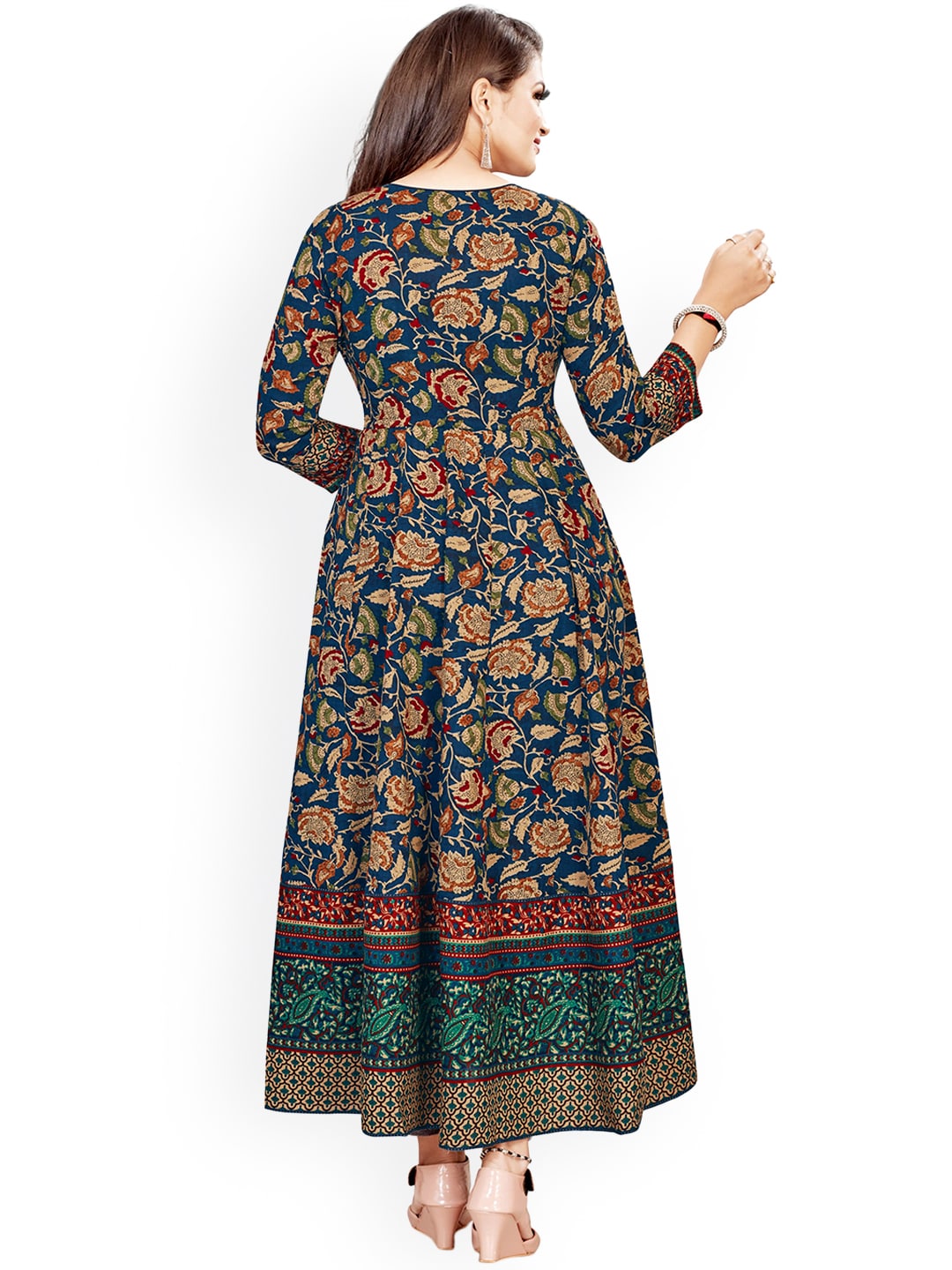 Kalini Women Navy Blue & Beige Ethnic Motifs Printed Anarkali Kurta with Tie-Ups - Distacart
