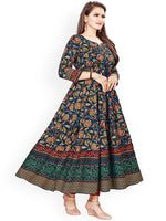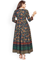 Kalini Women Navy Blue & Beige Ethnic Motifs Printed Anarkali Kurta with Tie-Ups
