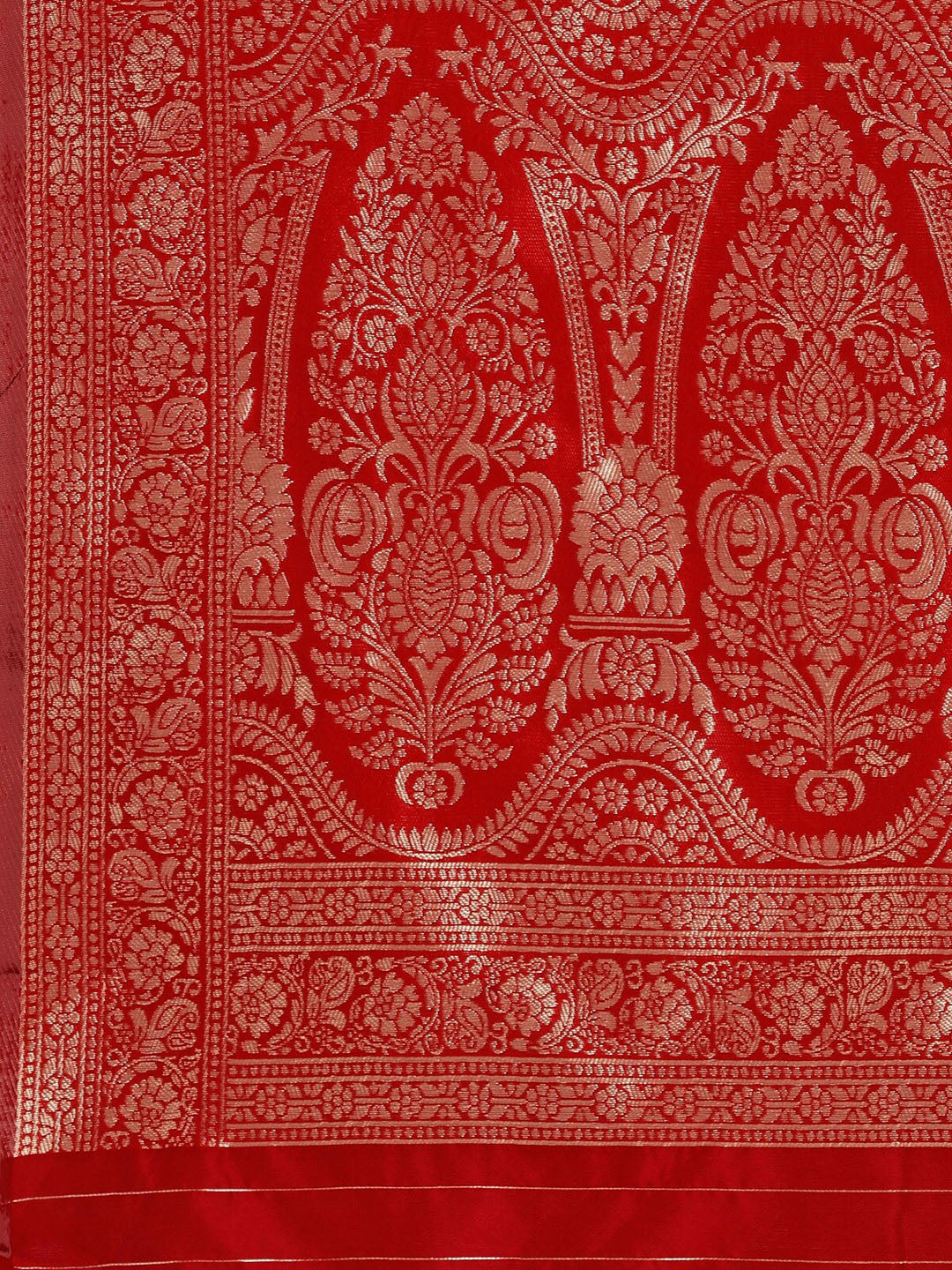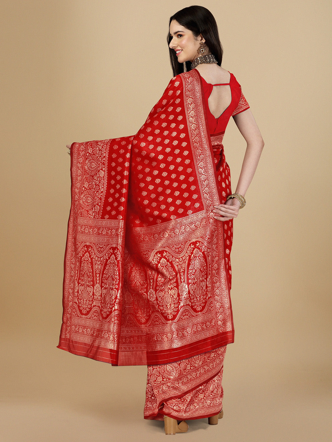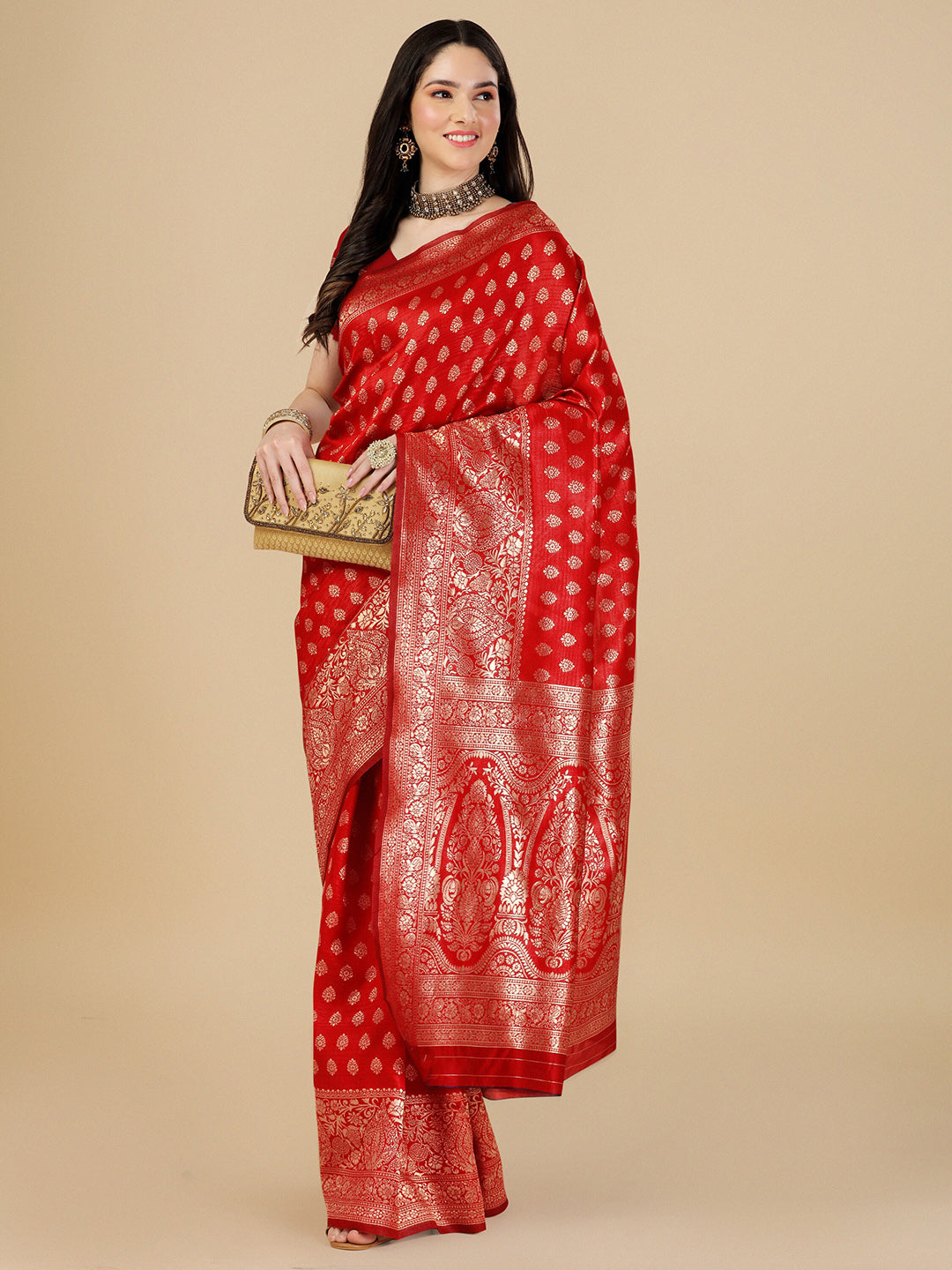 Kalini Woven Design Zari Art Silk Banarasi Saree Product Details Design Details Red and gold-toned banarasi saree Ethnic motifs saree with wov...