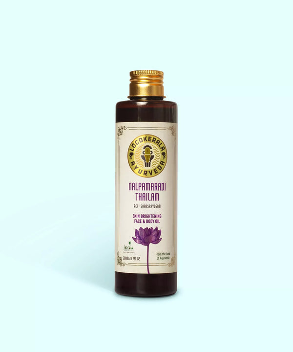 - Experience the time-honored tradition of Ayurveda with LocoKerala Ayurveda’s Nalpamaradi Thailam. Inspired by the esteemed Ayurvedic text Sahasrayogam, this cherished skincare remedy is meticulously crafted to rejuvenate and enhance your skin’s natural beauty. Suitable for all ages, this exquisite blend is a testament to the rich heritage of Ayurveda, offering unparalleled benefits for skin health and vitality.