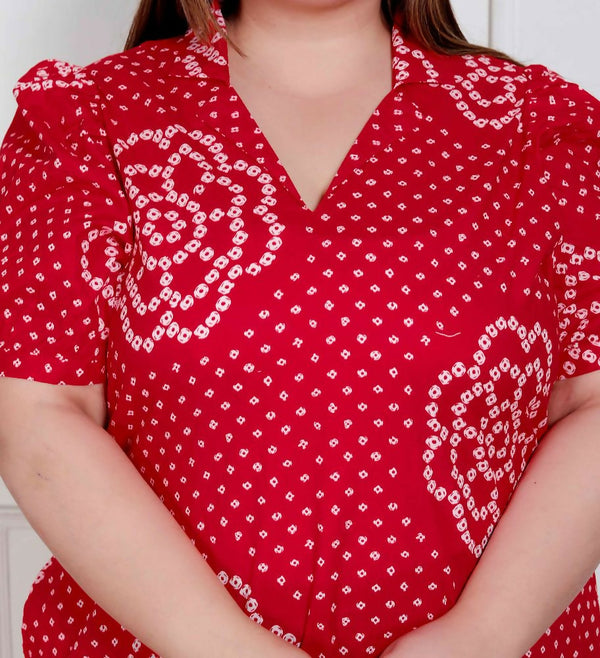 Embrace elegance with this Red Maxi dress from Miravan. Crafted from cotton in a regular fit, this beautiful dress features puff sleeves and a Collar neck. Team it with a pair of trousers, heels, and stud earrings.