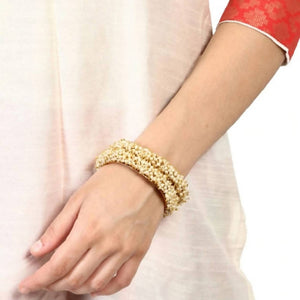 Mominos Fashion Trendy Gold Plated With Pearls Bangles