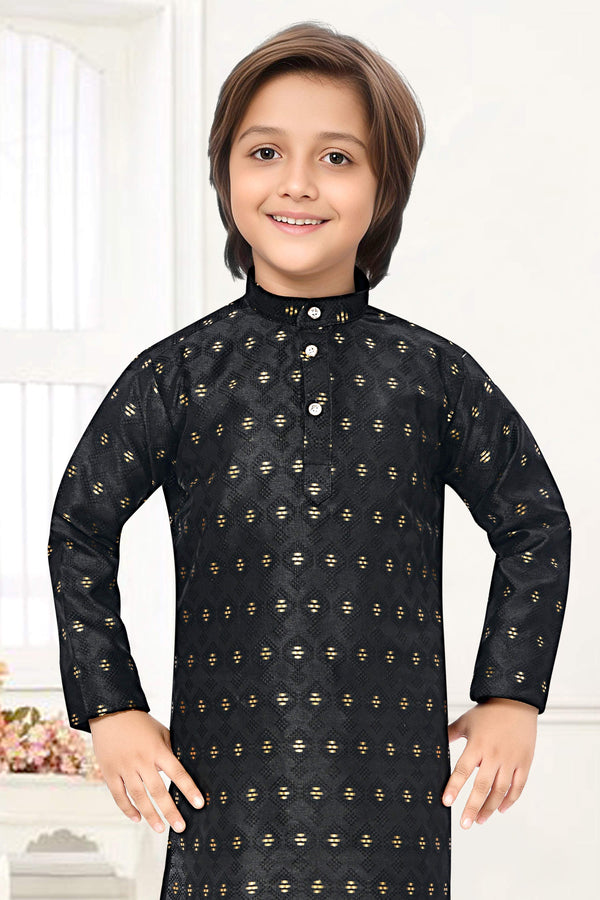 Neera Trendz Black Jacquard Zari Work Kid's Kurta With Pyjama
