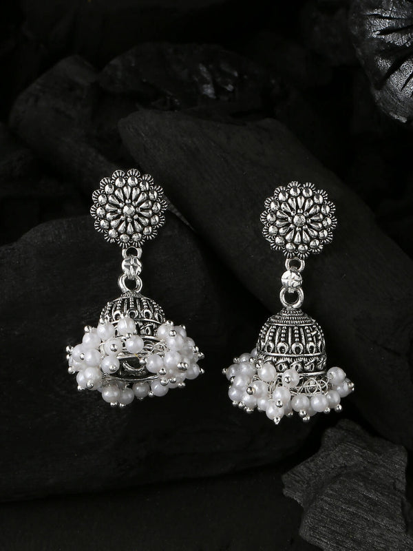NVR Women Silver Toned Dome Shaped Jhumkas Earrings