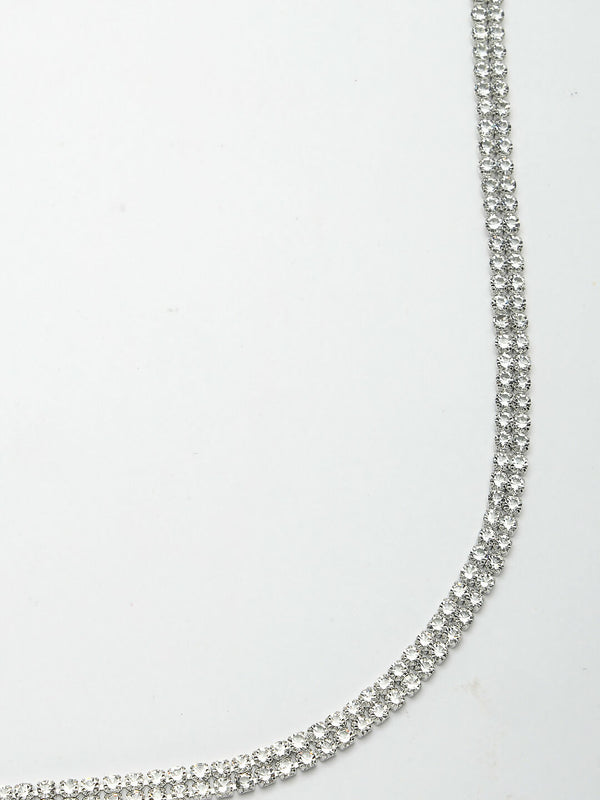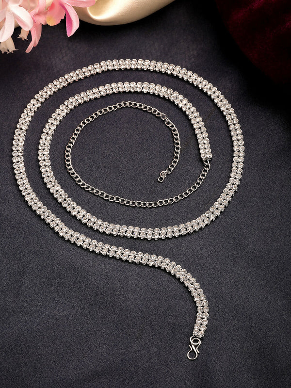 NVR Women's Silver-Plated AD-Studded Double Layered Kamarbandh Waist Chain