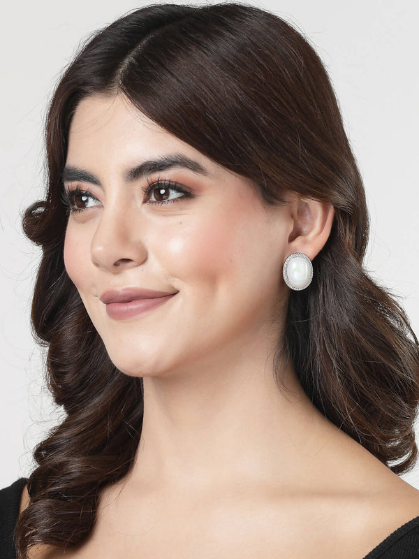 NVR Women's Silver Plated Oval Stud Earrings Style Note: Earrings from NVR will add a swanky twist to your jewellery collection, these jhumkas can ...