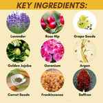 • The 9 PM Golden Glow Serum with Jojoba helps to keep moisture in the skin by forming a protective barrier on the surface. It has grape-seed, which shields your skin from sunburn and damage.