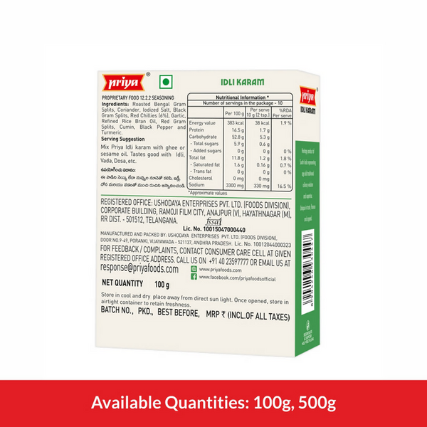 Priya Idli KaramAbout the Product:Priya Foods presents Idli’s authentic partner representing the age-old culinary legacy of south India. Idli Karam...