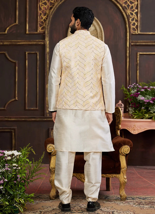 Embrace the festive season in style with this sophisticated Nehru jacket, elegantly paired with a timeless kurta pajama. Made from premium-quality fabric, the ensemble effortlessly combines classic tradition with contemporary finesse. Ideal for weddings, festive occasions, and formal events, it delivers exceptional comfort while exuding a refined, stylish presence. Add this versatile outfit to your collection and step into every celebration with poise and charm.Legal Disclaimer : Product color may slightly vary due to photographic lighting sources or your monitor settings.