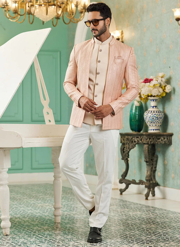 Indulge in refined elegance with this masterfully crafted Jodhpuri jacket. Cut from luxurious fabric, it features a sleek silhouette, structured collar, and button accents. Ideal for grand celebrations and formal events, this piece is where heritage meets high fashionLegal Disclaimer : Product color may slightly vary due to photographic lighting sources or your monitor settings.