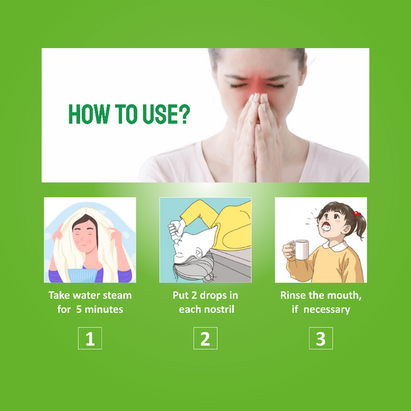 Tilt your head backward and apply 2–3 drops in each nostril as instructed on the product label.