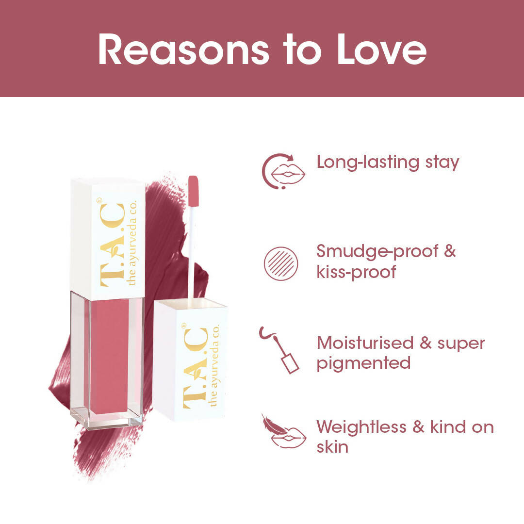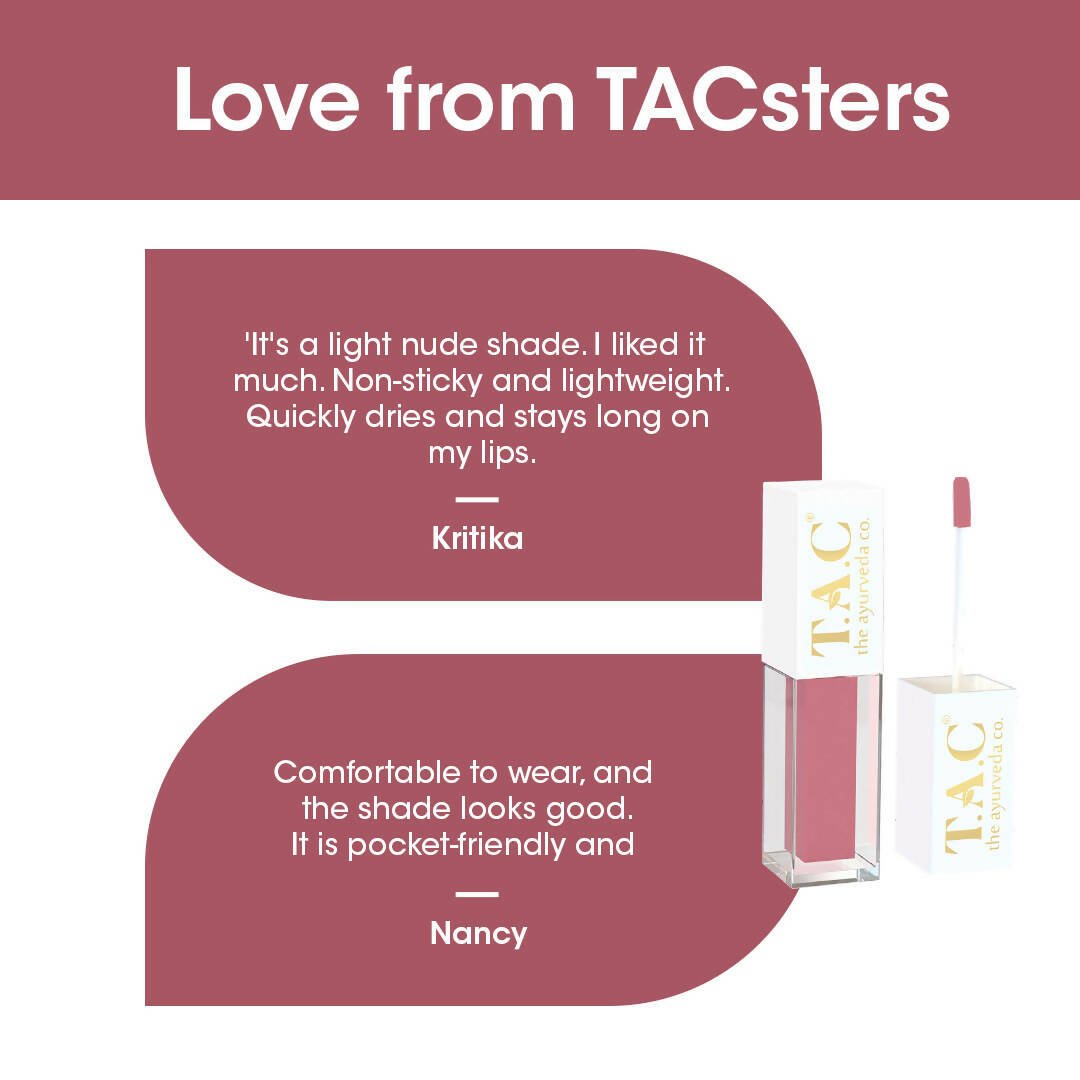 TAC - The Ayurveda Co. Liquid Matte Nude Lipstick Get subtle, bright, bold shades for your pouty lips with T.A.C Liquid Lipstick. They are speciall...