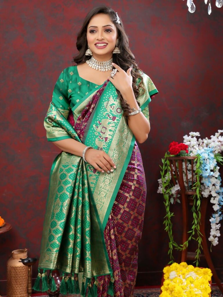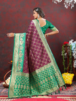 Vastranavya Purple Soft Patola Silk With Meenakari Weaving Motifs And Rich Zari Weaving Pallu Saree With Matching Blouse Fabric - Distacart