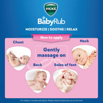 Introducing NEW Vicks BabyRub – specially developed for your baby in association with baby and skin experts. It contains Aloe Vera, Coconut Oil and fragrances of Lavender & Rosemary. Together with your loving touch, it helps to gently moisturize, soothe, and relax your baby. Suitable for babies 3 months and above. A good babyrub massage can help your baby’s skin retain moisture and stay soft, making your baby feel more comfortable.